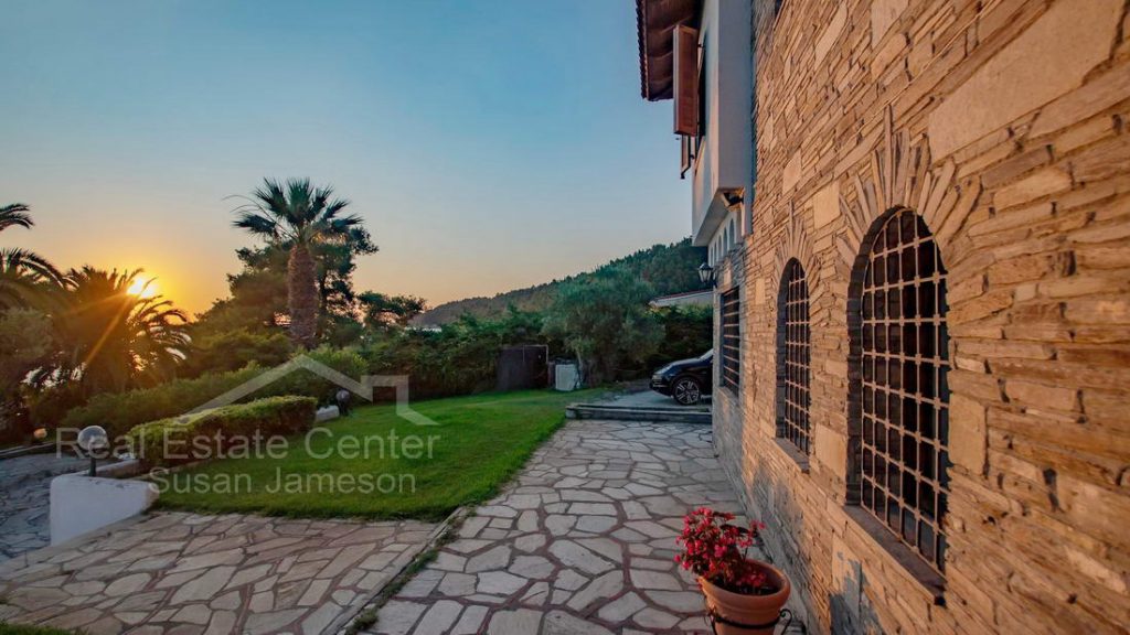 Modern villa with stunning sea views in Kassandra!! The villa on offer is a contemporary property with stunning, west-facing views over the countryside and the sea. The property is located on the south coast of Halkidiki Kassandra, in a quiet area on its own private land. This is one of the most sought-after areas in the Halkidiki area. The property consists of the main house and has a total liveable area of around 220 m2 (excluding the terrace). In the Villa, we have four bedrooms, two full bathrooms, a separate kitchen, and a formal living area with a walkout to the pergola and outdoor living in front of the sandy beach with plenty of privacy.